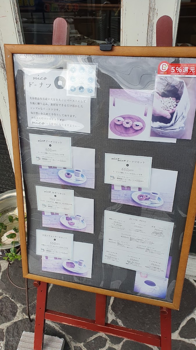 Welcome to nico Donatsu Yufuin Honten, a delightful cafe nestled in the charming town of Yufuin, Oita. This cozy spot specializes in a unique twist on traditional donuts, offering a range of soy-based delicacies that will surprise and satisfy even the most discerning palate. Located at 3056-13 Yufuincho Kawakami, this quaint establishment not only boasts an inviting atmosphere but also a menu that promises to elevate your dessert experience.
